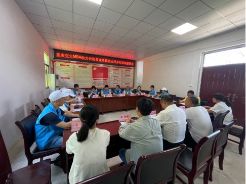 实地走访调研之后,我校MBA/MEM教育中心一行和泉水村村委会班子成员举行了主题为“重庆交通大学MBA助力云阳县龙角镇泉水村乡村振兴”的座谈会。会上,驻村第一书记樊信友和村支书黄金辉介绍了泉水村产业发展规划及面临的问题。MBA教师代表、学生代表、企业代表结合各自的专业知识、行业特点与资源优势纷纷建言献策。
